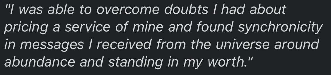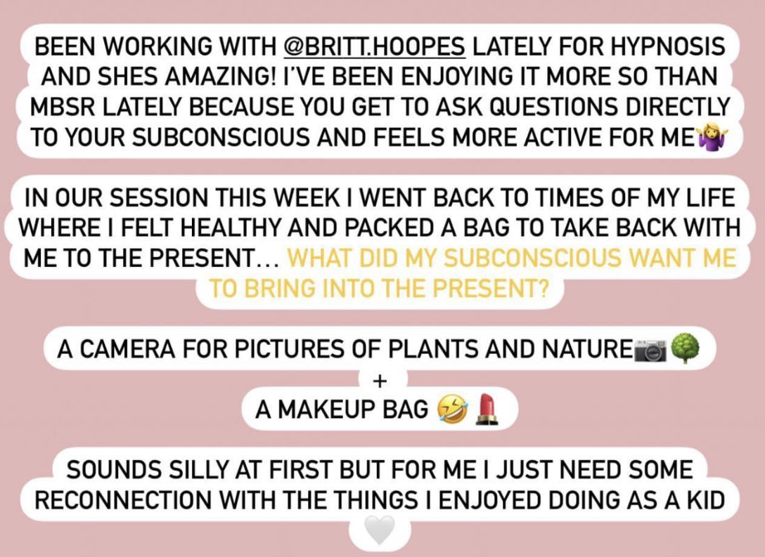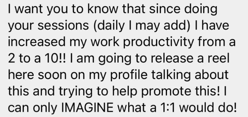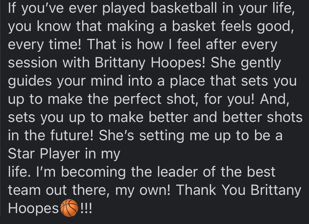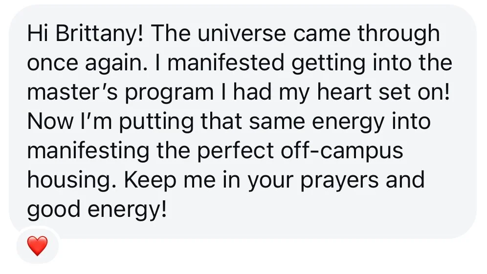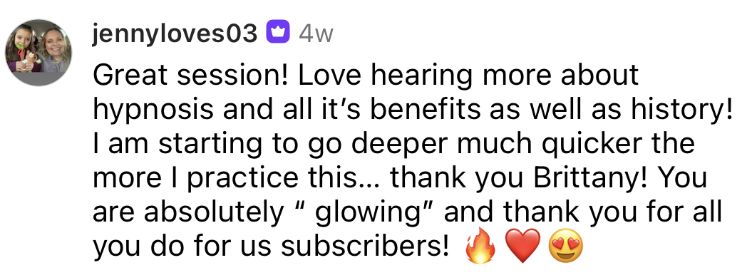 “…Because of that session, I was able to pivot my business model, and not only create space to grow my business and experiment in a way that I had never done before, but it also opened me up to this idea and possibility that I could write my own book one day. And after our session, I started to write my first personal memoir, on top of growing my copywriting, ghost writing & marketing business…Without Brittany’s help in this area and helping me clear these subconscious blocks that we're coming up - through the power of hypnosis and through Brittany’s gift - this would not be possible! There is no one better to walk with you through this journey.”